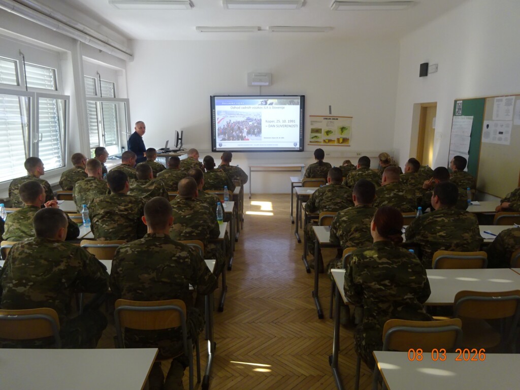 Nedeljski dopoldanski program, ob koncu prvega tedna usposabljanja, je tradicionalno posvečeno spoznavanju procesa osamosvajanja Slovenije. Program skupno izvajajo predstavniki Območnega združenja slovenskih častnikov Novo mesto in Območnega združenja veteranov vojne za Slovenijo Dolenjske. Program seznanitve zajema: predavanje o tem obdobju in ogleda dokumentarnega filma »Vojna brez sovraštva«. Tu spoznajo sestavine nacionalno varnostnega sistema ter vloge, ki so jih imeli pripadniki teritorialne obrambe, milice in civilne obrambe v obdobju osamosvajanja. Sledi ogled spominske sobe Teritorialne obrambe ter muzejske zbirke TO in naborniška vojska. Za zaključek je sledil še obisk v spominskem parku Poganci. Tu jim je Marjan Grabnar, brigadir v pokoju, predstavil potek in pomen spopadov na Dolenjskem in Posavju. Predstavitev je bila zaključena z odgovori na vprašanja, ki so jih imeli kandidati.