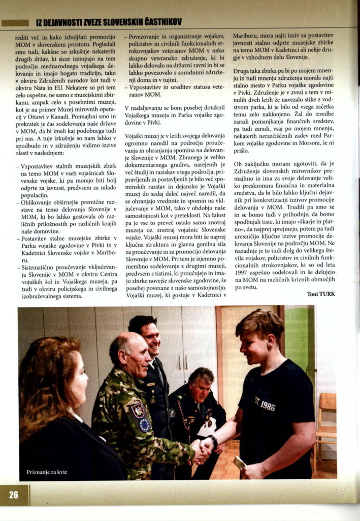 V Zvezi slovenskih častnikov se zavedamo pomembnosti nacionalne varnosti Republike Slovenije. Zato je naše poslanstvo aktivno sodelovati s Slovensko vojsko oziroma z njenimi enotami in poveljstvi pri promociji vojaškega in drugih obrambno varnostnih poklicev. Naše delo je usmerjeno v različne oblike dela z mladimi. Na obiskih po šolah jim predstavljamo programe Ministrstva za obrambo, kako […]