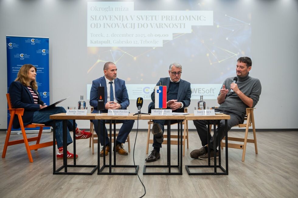 Z leve Katja Geršak iz Centra za evropsko prihodnost, Vojko Volk, državni sekretar v kabinetu predsednika Vlade Republike Slovenije, mag. Borut Sajovic, minister za obrambo Republike Slovenije in prof. dr. Iztok Prezelj, predstojnik Obramboslovnega raziskovalnega centra na FDV Univerze Ljubljana in predsednik Evro-atlantskega sveta Slovenije.